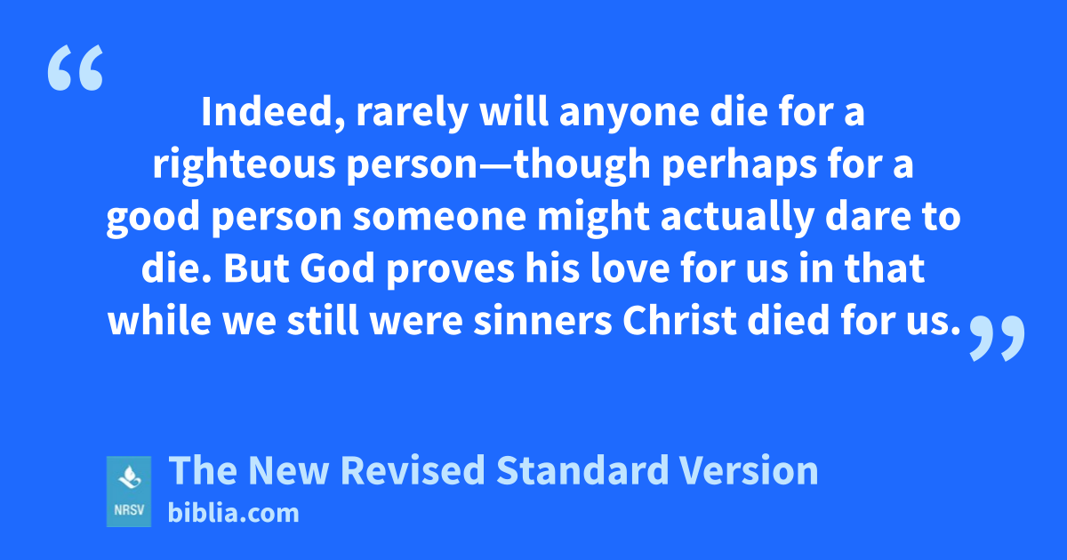 Indeed, rarely will anyone die for a righteous person—though perhaps for a good person someone might actually dare to die. But God proves his love for us in that while we still were sinners Christ died for us.