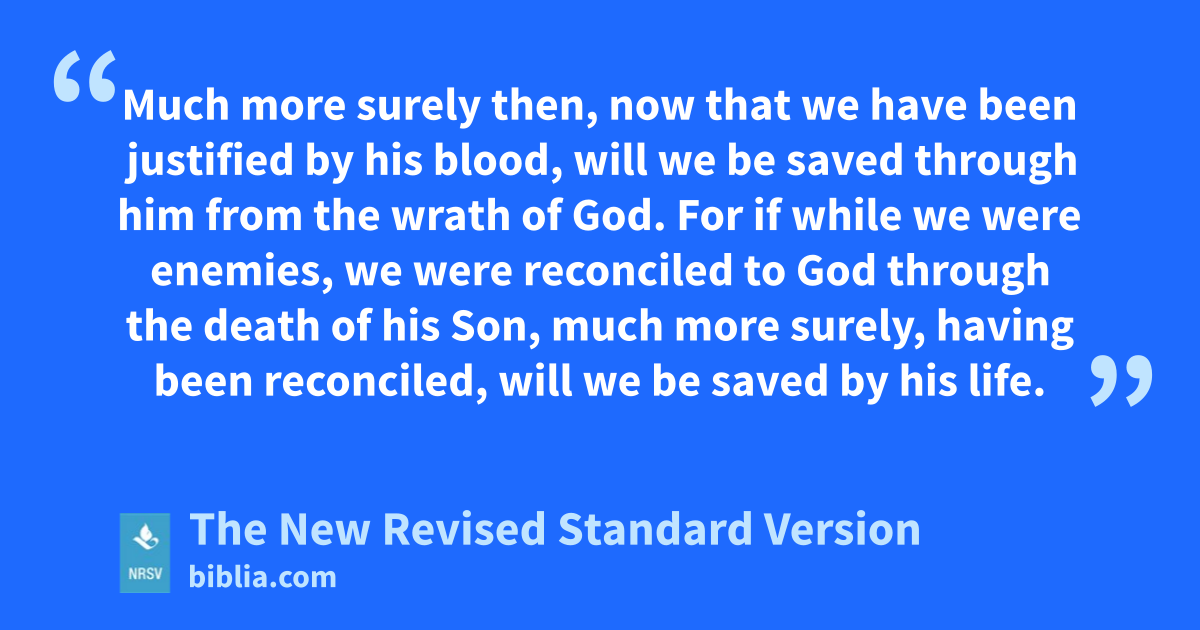 Much more surely then, now that we have been justified by his blood, will we be saved through him from the wrath of God. For if while we were enemies, we were reconciled to God through the death of his Son, much more surely, having been reconciled, will we be saved by his life.