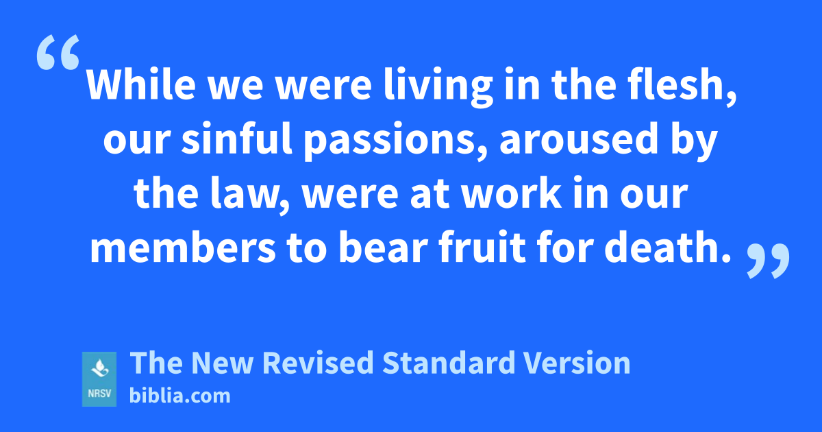 While we were living in the flesh, our sinful passions, aroused by the law, were at work in our members to bear fruit for death.
