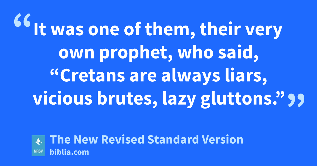 It was one of them, their very own prophet, who said, “Cretans are always liars, vicious brutes, lazy gluttons.”