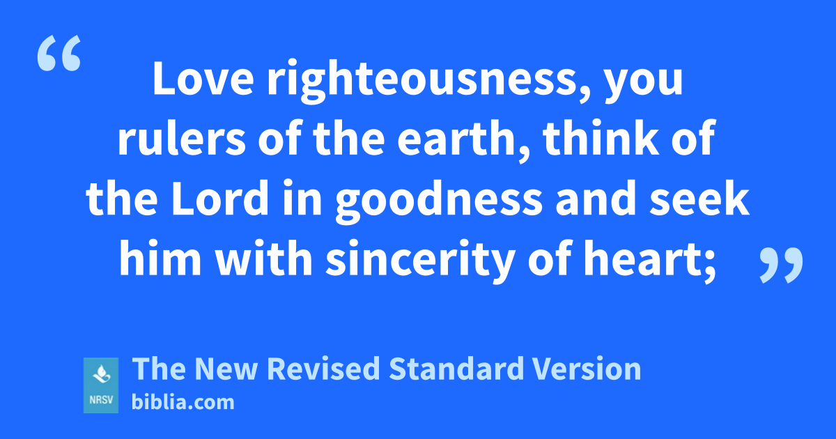 Love righteousness, you rulers of the earth, think of the Lord in goodness and seek him with sincerity of heart;