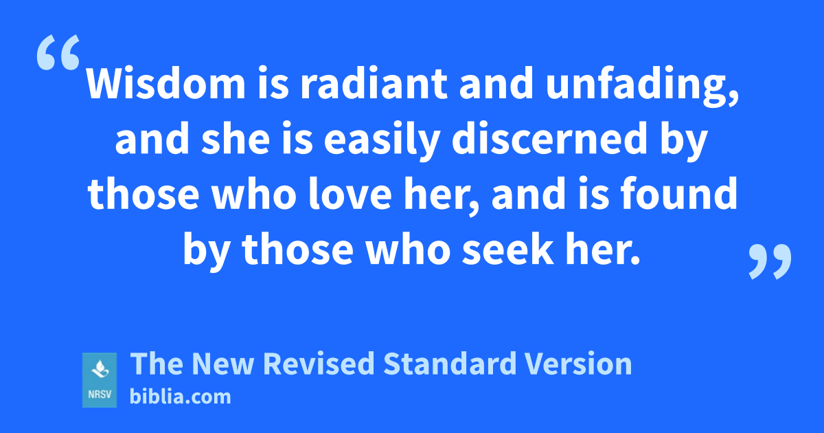 Wisdom is radiant and unfading, and she is easily discerned by those who love her, and is found by those who seek her.
