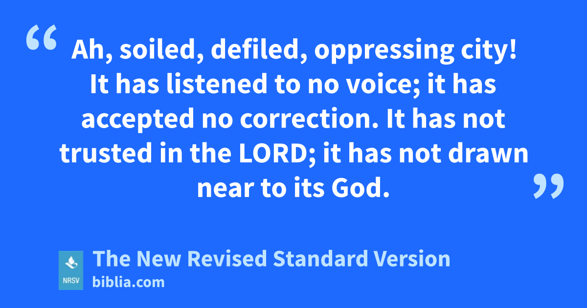 Ah, soiled, defiled, oppressing city! It has listened to no voice; it has accepted no correction. It has not trusted in the LORD; it has not drawn near to its God.