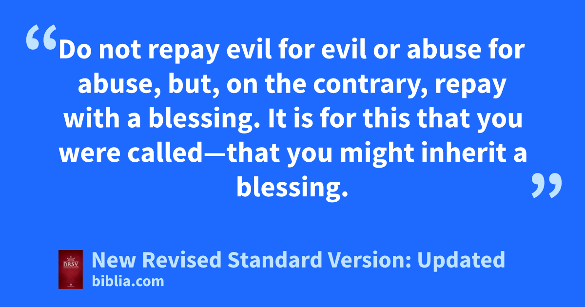 8 Finally, all of you, have unity of spirit, sympathy, love for one another, a tender heart, and a humble mind.* 9 Do not repay evil for evil or abuse for abuse, but, on the contrary, repay with a blessing. It is for this that you were called—that you might inherit a blessing.* 10 For