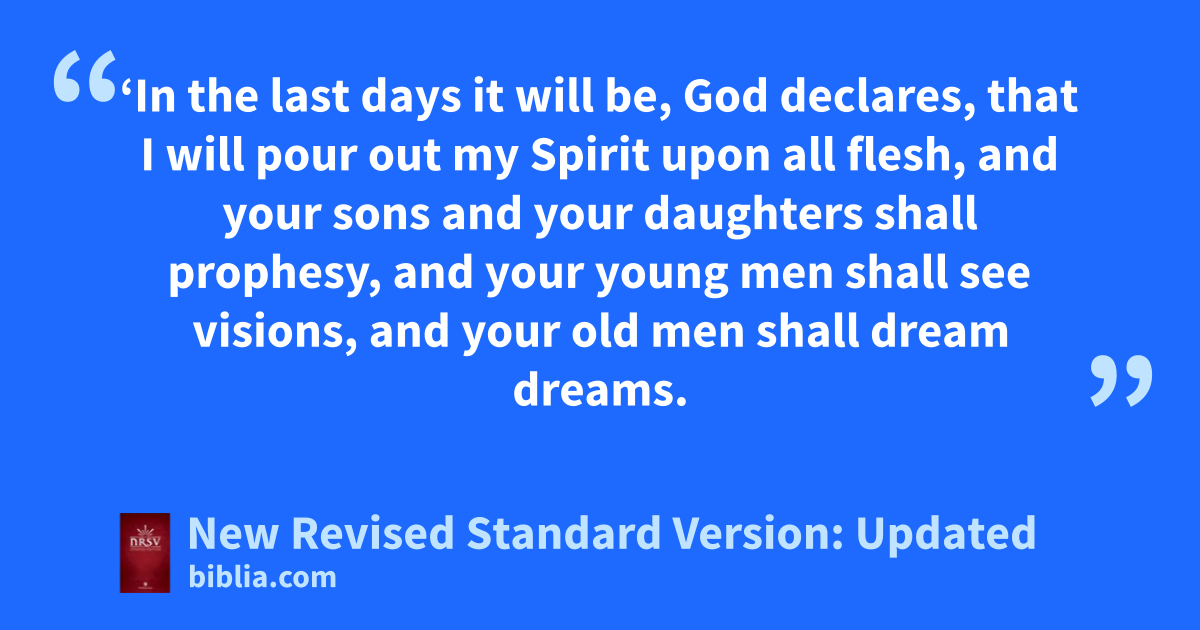 5 Now there were devout Jews from every people under heaven living in Jerusalem. 6 And at this sound the crowd gathered and was bewildered, because each one heard them speaking in the native language of each. 7 Amazed and astonished, they asked, “Are not all these who are speaking Galileans? 8 And how is it that we hear, each of us, in our own native language? 9 Parthians, Medes, Elamites, and residents of Mesopotamia, Judea and Cappadocia, Pontus and Asia, 10 Phrygia and Pamphylia, Egypt and the parts of Libya belonging to Cyrene, and visitors from Rome, both Jews and proselytes, 11 Cretans and Arabs—in our own languages we hear them speaking about God’s deeds of power.” 12 All were amazed and perplexed, saying to one another, “What does this mean?” 13 But others sneered and said, “They are filled with new wine.”