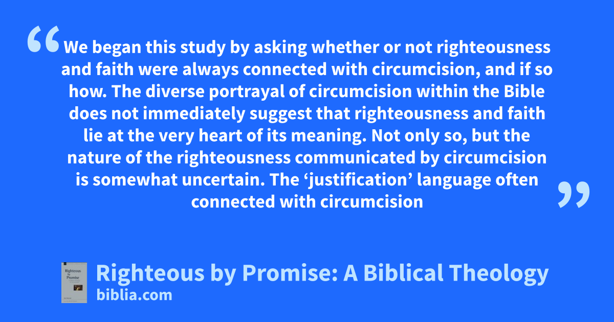We began this study by asking whether or not righteousness and faith were always connected with circumcision, and if so how. The diverse portrayal of circumcision within the Bible does not immediately suggest that righteousness and faith lie at the very heart of its meaning. Not only so, but the nature of the righteousness communicated by circumcision is somewhat uncertain. The ‘justification’ language often connected with circumcision