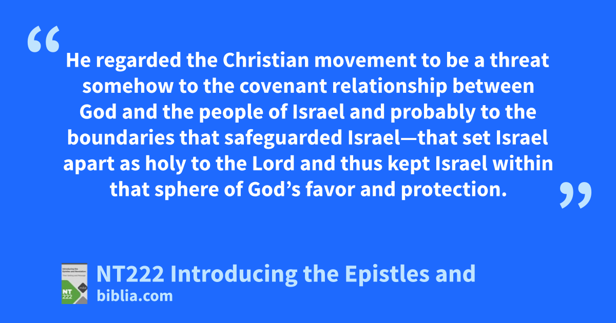 He regarded the Christian movement to be a threat somehow to the covenant relationship between God and the people of Israel and probably to the boundaries that safeguarded Israel—that set Israel apart as holy to the Lord and thus kept Israel within that sphere of God’s favor and protection.