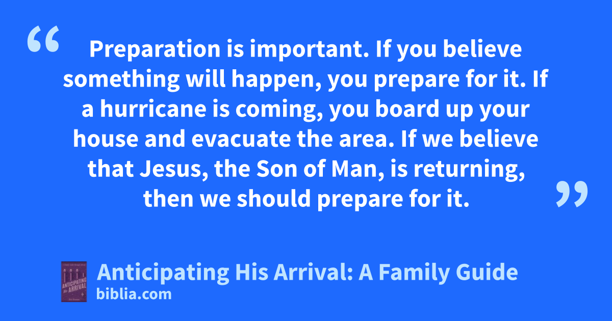 Preparation is important. If you believe something will happen, you prepare for it. If a hurricane is coming, you board up your house and evacuate the area. If we believe that Jesus, the Son of Man, is returning, then we should prepare for it.