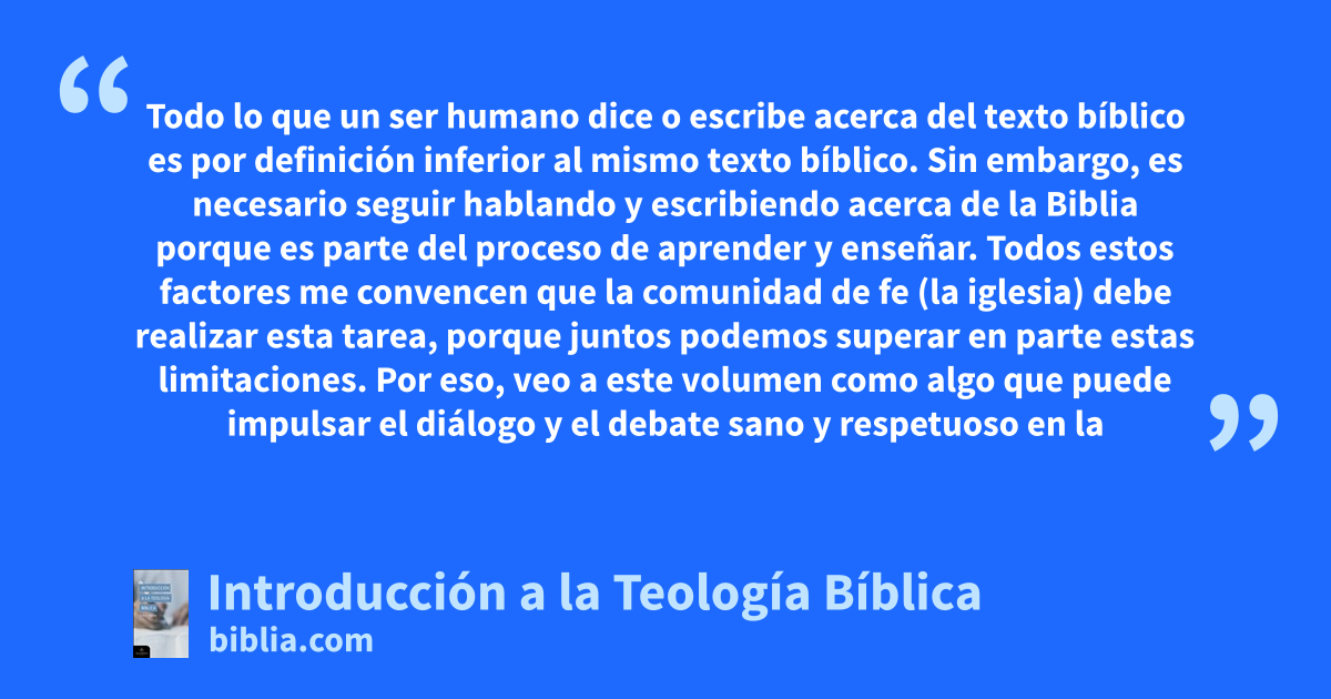 Todo lo que un ser humano dice o escribe acerca del texto bíblico es por definición inferior al mismo texto bíblico. Sin embargo, es necesario seguir hablando y escribiendo acerca de la Biblia porque es parte del proceso de aprender y enseñar. Todos estos factores me convencen que la comunidad de fe (la iglesia) debe realizar esta tarea, porque juntos podemos superar en parte estas limitaciones. Por eso, veo a este volumen como algo que puede impulsar el diálogo y el debate sano y respetuoso en la