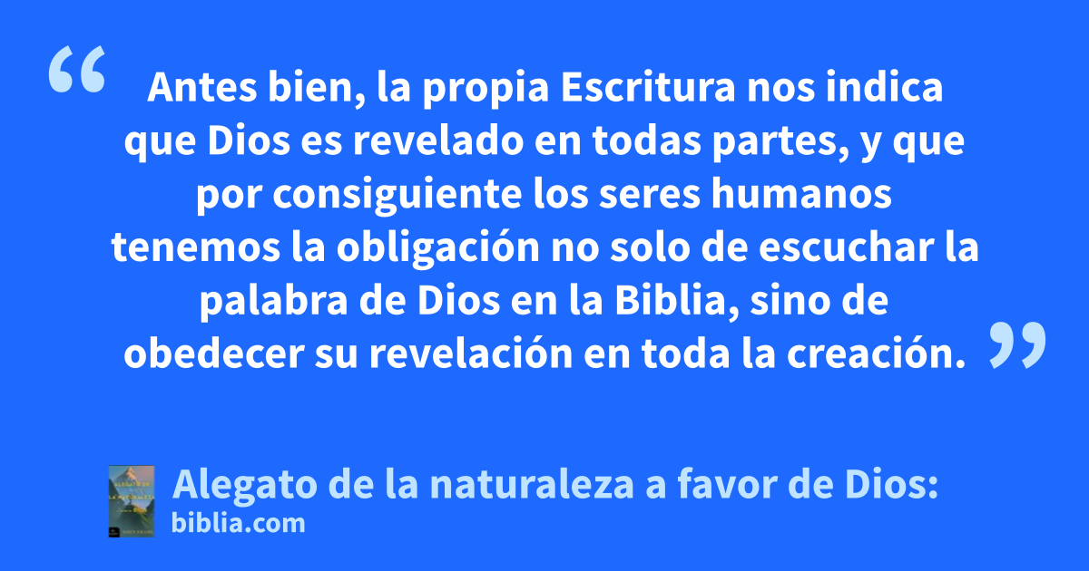 Antes bien, la propia Escritura nos indica que Dios es revelado en todas partes, y que por consiguiente los seres humanos tenemos la obligación no solo de escuchar la palabra de Dios en la Biblia, sino de obedecer su revelación en toda la creación.