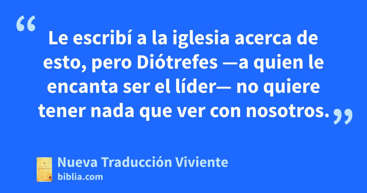 Le escribí a la iglesia acerca de esto, pero Diótrefes —a quien le encanta ser el líder— no quiere tener nada que ver con nosotros.