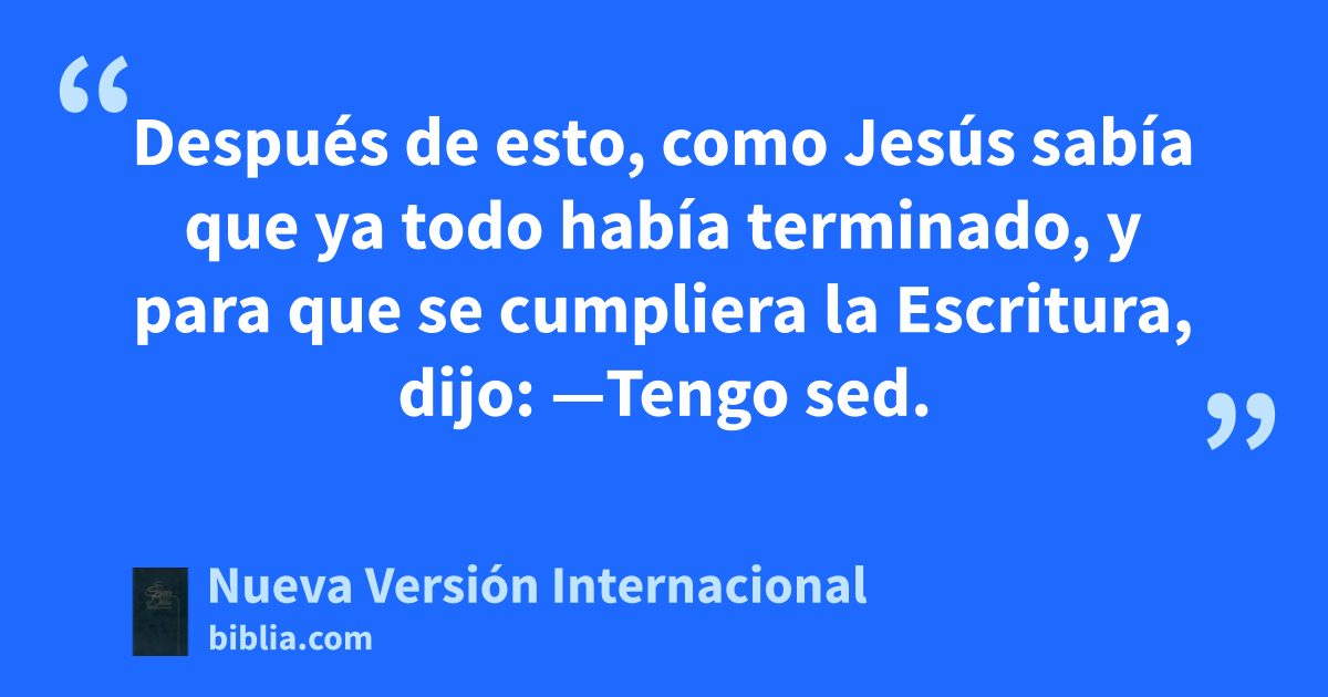 Después de esto, como Jesús sabía que ya todo había terminado, y para que se cumpliera la Escritura, dijo: —Tengo sed.