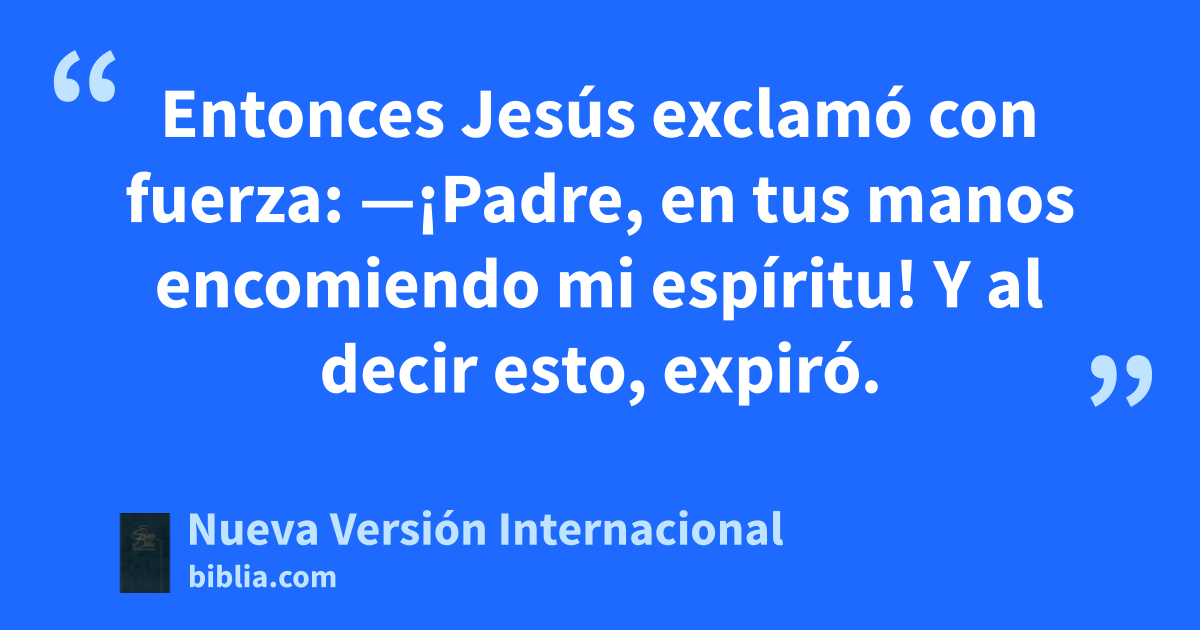 Entonces Jesús exclamó con fuerza: —¡Padre, en tus manos encomiendo mi espíritu! Y al decir esto, expiró.