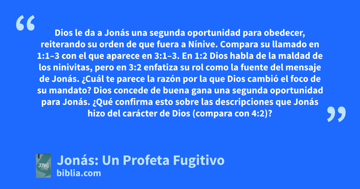 Jonás fue un profeta rebelde. Cuando Dios quiso que predicara un mensaje de esperanza a la ciudad de Nínive, Jonás huyó en la dirección contraria. Su historia de fracaso nos muestra la profundidad de la misericordia de Dios -tanto hacia el profeta como hacia un pueblo que no lo merecía- y nos reta a ser embajadores de dicha misericordia.