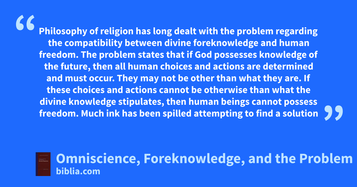 Philosophy of religion has long dealt with the problem regarding the compatibility between divine foreknowledge and human freedom. The problem states that if God possesses knowledge of the future, then all human choices and actions are determined and must occur. They may not be other than what they are. If these choices and actions cannot be otherwise than what the divine knowledge stipulates, then human beings cannot possess freedom. Much ink has been spilled attempting to find a solution