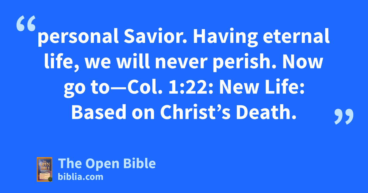 personal Savior. Having eternal life, we will never perish. Now go to—Col. 1:22: New Life: Based on Christ’s Death.