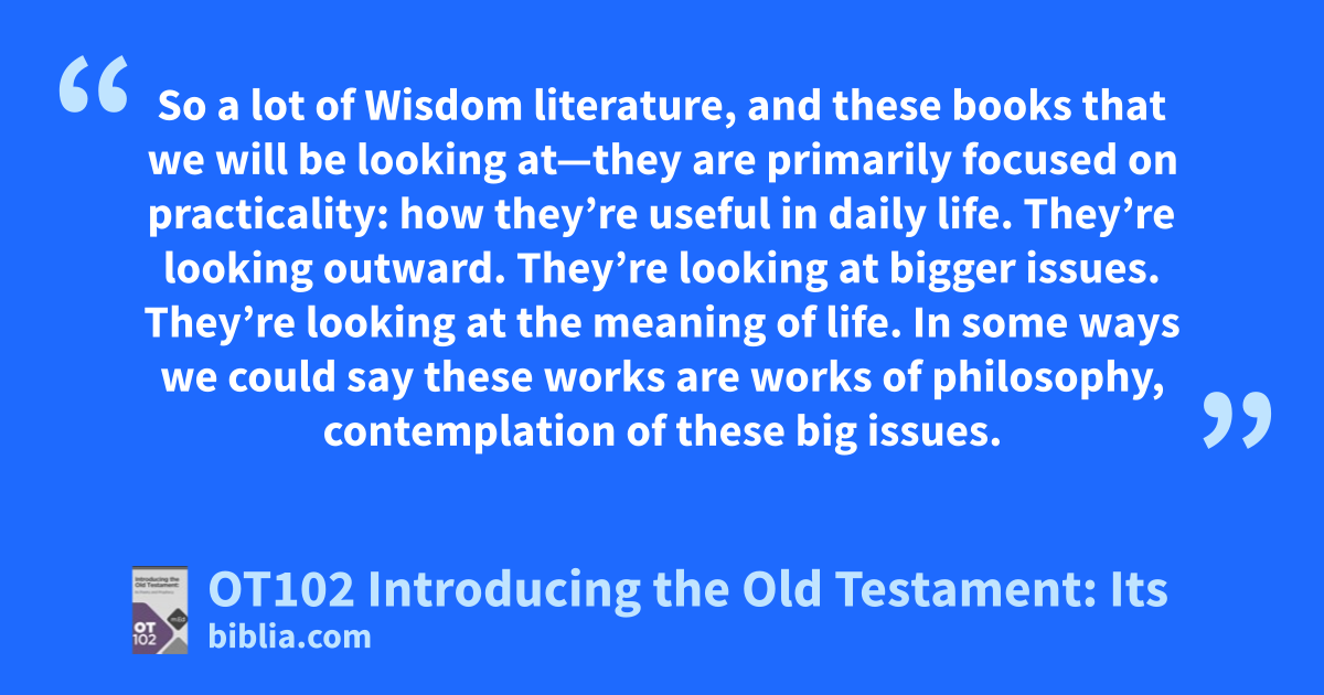 So a lot of Wisdom literature, and these books that we will be looking at—they are primarily focused on practicality: how they’re useful in daily life. They’re looking outward. They’re looking at bigger issues. They’re looking at the meaning of life. In some ways we could say these works are works of philosophy, contemplation of these big issues.