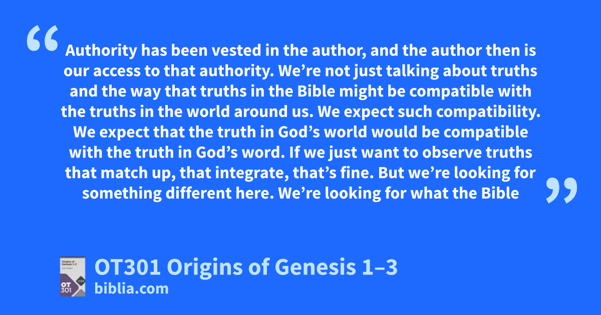 Authority has been vested in the author, and the author then is our access to that authority. We’re not just talking about truths and the way that truths in the Bible might be compatible with the truths in the world around us. We expect such compatibility. We expect that the truth in God’s world would be compatible with the truth in God’s word. If we just want to observe truths that match up, that integrate, that’s fine. But we’re looking for something different here. We’re looking for what the Bible