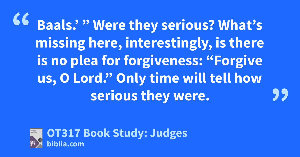 Baals.’ ” Were they serious? What’s missing here, interestingly, is there is no plea for forgiveness: “Forgive us, O Lord.” Only time will tell how serious they were.