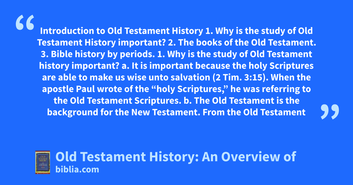 Introduction to Old Testament History 1. Why is the study of Old Testament History important? 2. The books of the Old Testament. 3. Bible history by periods. 1. Why is the study of Old Testament history important? a. It is important because the holy Scriptures are able to make us wise unto salvation (2 Tim. 3:15). When the apostle Paul wrote of the “holy Scriptures,” he was referring to the Old Testament Scriptures. b. The Old Testament is the background for the New Testament. From the Old Testament