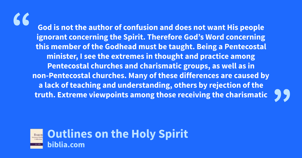 God is not the author of confusion and does not want His people ignorant concerning the Spirit. Therefore God’s Word concerning this member of the Godhead must be taught. Being a Pentecostal minister, I see the extremes in thought and practice among Pentecostal churches and charismatic groups, as well as in non-Pentecostal churches. Many of these differences are caused by a lack of teaching and understanding, others by rejection of the truth. Extreme viewpoints among those receiving the charismatic