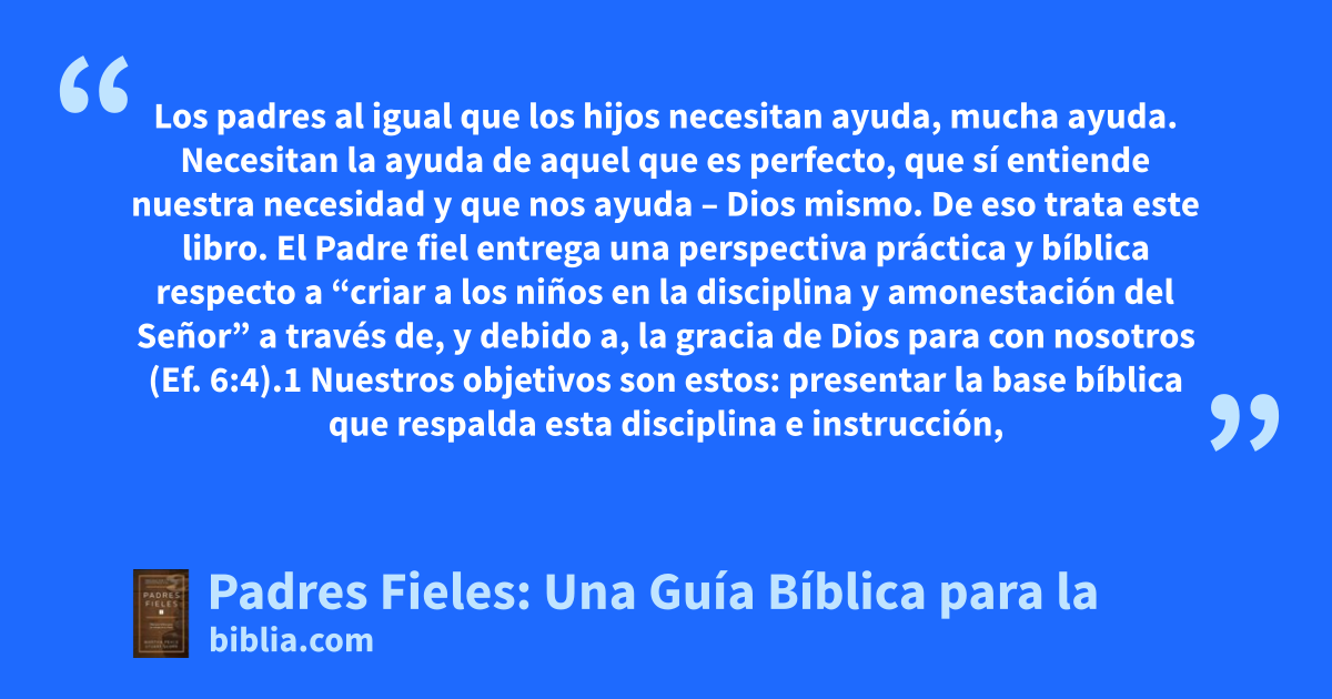 Los padres al igual que los hijos necesitan ayuda, mucha ayuda. Necesitan la ayuda de aquel que es perfecto, que sí entiende nuestra necesidad y que nos ayuda – Dios mismo. De eso trata este libro. El Padre fiel entrega una perspectiva práctica y bíblica respecto a “criar a los niños en la disciplina y amonestación del Señor” a través de, y debido a, la gracia de Dios para con nosotros (Ef. 6:4).1 Nuestros objetivos son estos: presentar la base bíblica que respalda esta disciplina e instrucción,