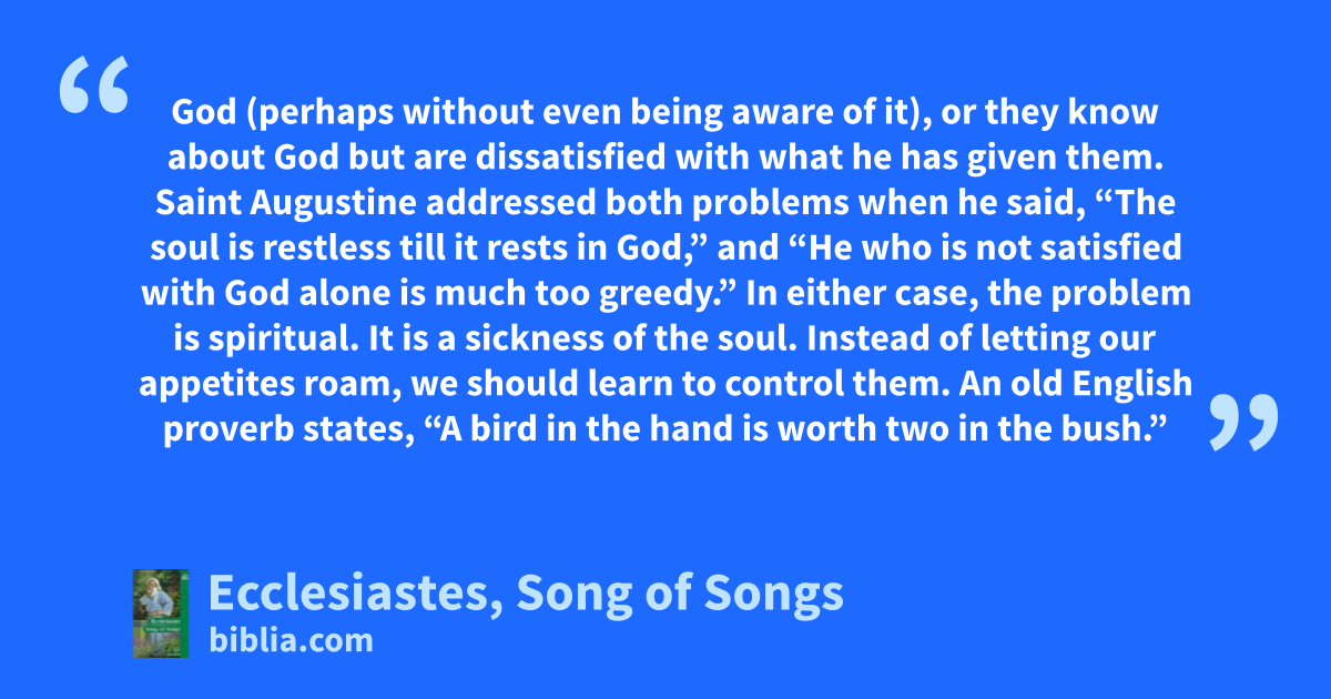 King Solomon was known for his great wisdom, and these two books capture some of this wisdom. Ecclesiastes teaches that life is meaningless without God. The Song of Songs is a love song that expresses the love between a man and a woman. On another level it expresses the love of the Lord for his believers, the church.