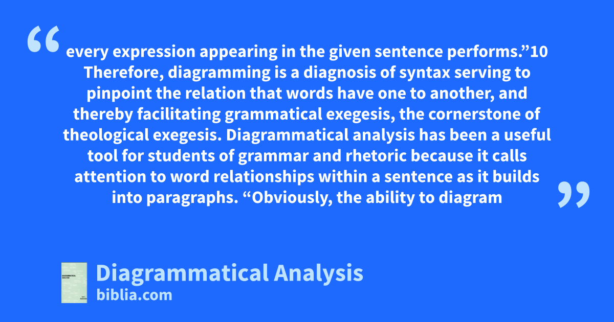 Diagrammatical Analysis is designed to facilitate the student's understanding of syntactical relationships in grammar. The parts of speech are defined and diagrammatically illustrated in English, Greek and Hebrew. Beginning with one's spoken language, the analyst has a foundation upon which he can build his understanding of the peculiar and salient features of Greek and Hebrew syntax. Therefore,...