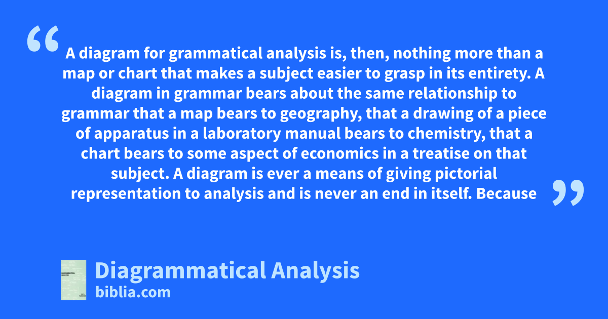Diagrammatical Analysis is designed to facilitate the student's understanding of syntactical relationships in grammar. The parts of speech are defined and diagrammatically illustrated in English, Greek and Hebrew. Beginning with one's spoken language, the analyst has a foundation upon which he can build his understanding of the peculiar and salient features of Greek and Hebrew syntax. Therefore,...