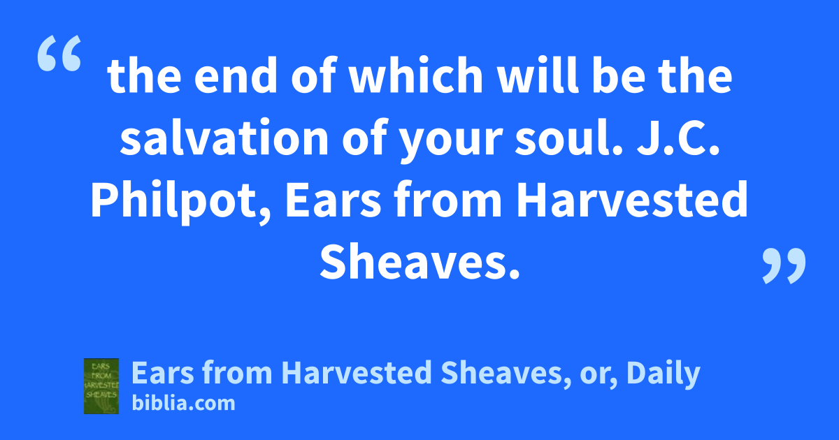 the end of which will be the salvation of your soul. J.C. Philpot, Ears from Harvested Sheaves.