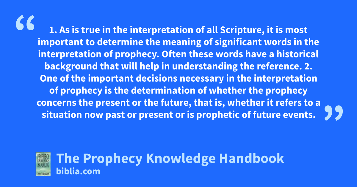 Here is a one-source reference book that covers all prophecies in the Bible. Everything from Genesis to Revelation, whether fulfilled or not-yet-fulfilled, each prophecy is discussed carefully, along with its various interpretations.