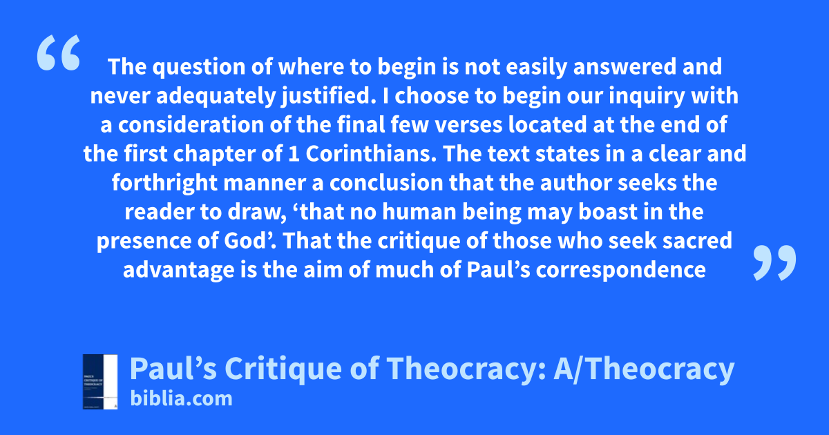 Paul’s Critique of Theocracy offers an interpretation of selected texts in Corinthians and Galatians concerned with the establishment of legitimate authority in the Christian community. Odell-Scott argues that for Paul, no one may boast that they are selected by God, and no one has the authority to rule as God’s representative. Paul also criticizes those who exhibit a superior “sacredness” over...