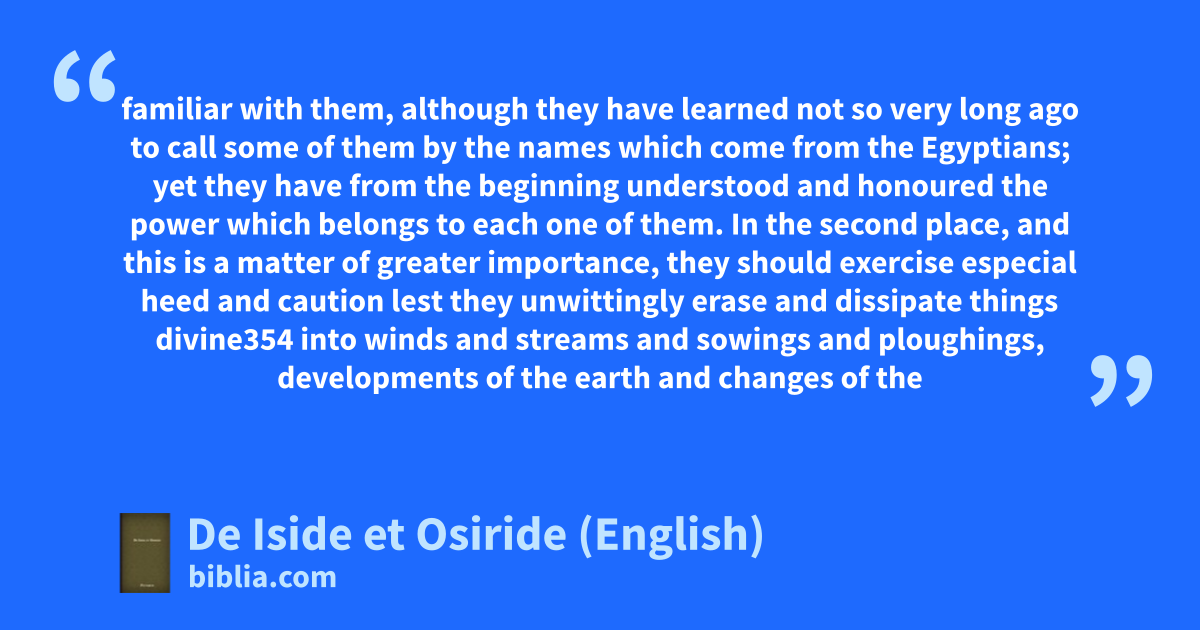 familiar with them, although they have learned not so very long ago to call some of them by the names which come from the Egyptians; yet they have from the beginning understood and honoured the power which belongs to each one of them. In the second place, and this is a matter of greater importance, they should exercise especial heed and caution lest they unwittingly erase and dissipate things divine354 into winds and streams and sowings and ploughings, developments of the earth and changes of the