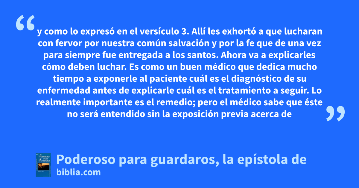 Poderoso para guardaros es un comentario expositivo de la epístola de Judas, en la que se desarrollan los siguientes temas: La Epístola de Judas: una epístola olvidada. ¿Quién fue Judas? Llamados, amados y guardados. La oración de Judas. El propósito de la Epístola. Presentación de los falsos maestros. El ejemplo de los israelitas incrédulos. Los ángeles caídos. Sodoma y Gomorra. Lujuria,...