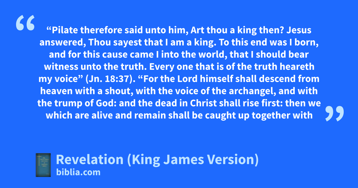 “Pilate therefore said unto him, Art thou a king then? Jesus answered, Thou sayest that I am a king. To this end was I born, and for this cause came I into the world, that I should bear witness unto the truth. Every one that is of the truth heareth my voice” (Jn. 18:37). “For the Lord himself shall descend from heaven with a shout, with the voice of the archangel, and with the trump of God: and the dead in Christ shall rise first: then we which are alive and remain shall be caught up together with