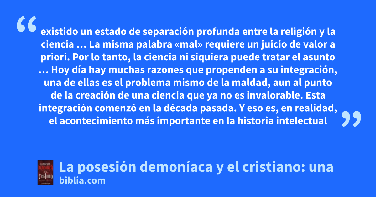 existido un estado de separación profunda entre la religión y la ciencia … La misma palabra «mal» requiere un juicio de valor a priori. Por lo tanto, la ciencia ni siquiera puede tratar el asunto … Hoy día hay muchas razones que propenden a su integración, una de ellas es el problema mismo de la maldad, aun al punto de la creación de una ciencia que ya no es invalorable. Esta integración comenzó en la década pasada. Y eso es, en realidad, el acontecimiento más importante en la historia intelectual