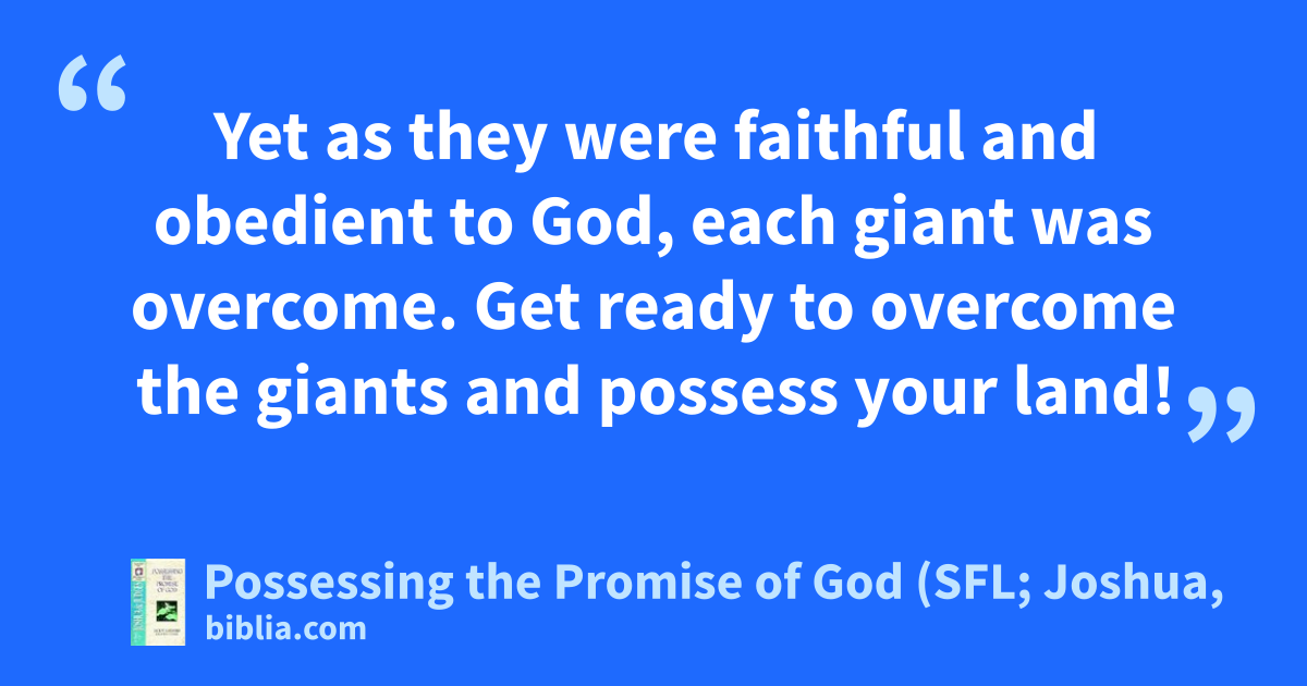 Yet as they were faithful and obedient to God, each giant was overcome. Get ready to overcome the giants and possess your land!