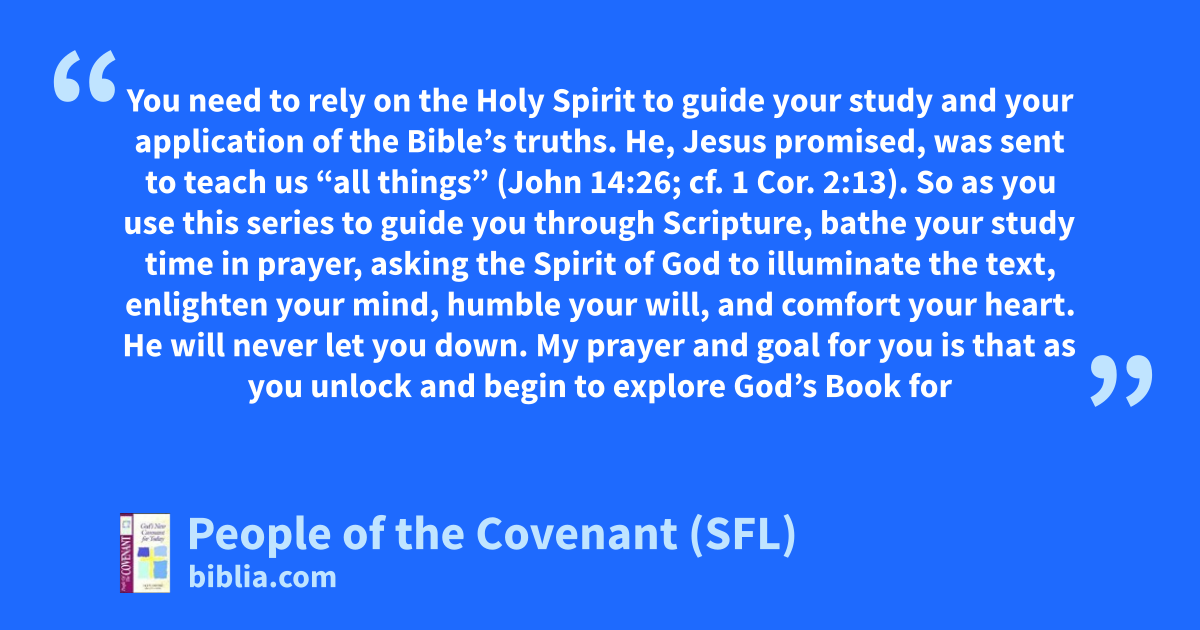 You need to rely on the Holy Spirit to guide your study and your application of the Bible’s truths. He, Jesus promised, was sent to teach us “all things” (John 14:26; cf. 1 Cor. 2:13). So as you use this series to guide you through Scripture, bathe your study time in prayer, asking the Spirit of God to illuminate the text, enlighten your mind, humble your will, and comfort your heart. He will never let you down. My prayer and goal for you is that as you unlock and begin to explore God’s Book for