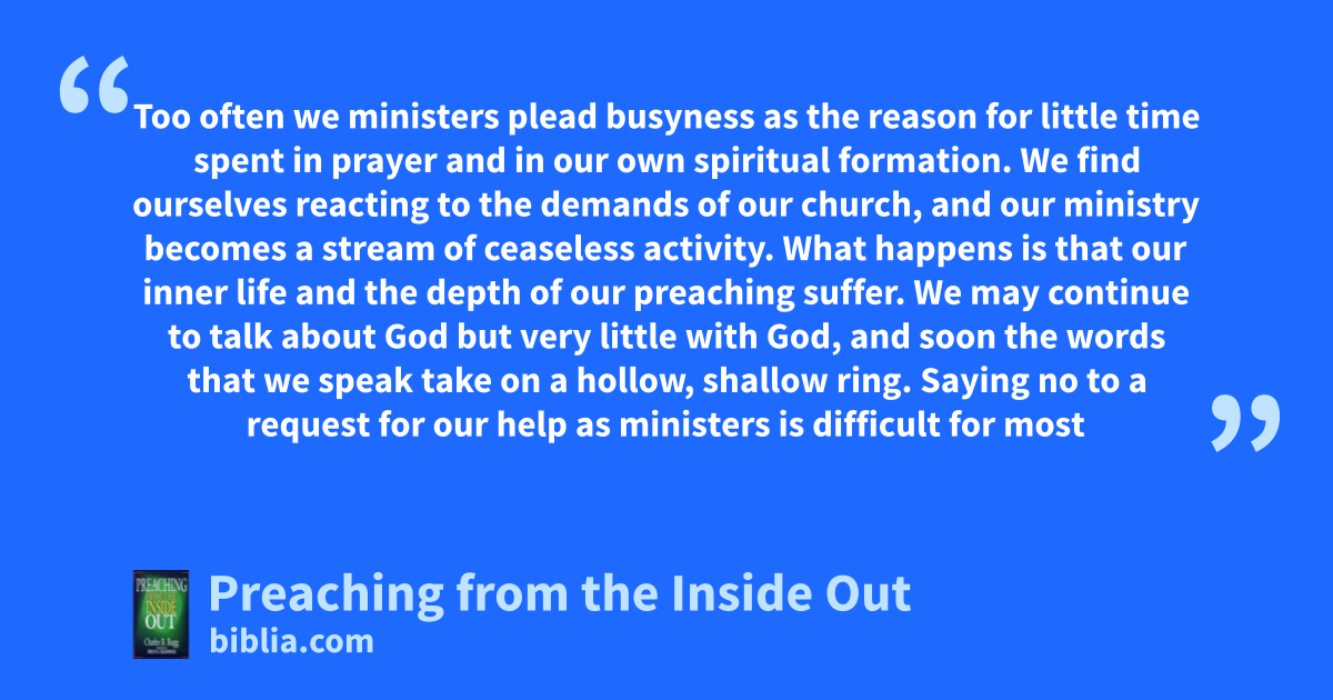 Bugg calls for a new emphasis on the spiritual vitality of the preacher. For him, preaching is more than a craft or an art or even a profession. It is more than the shaping of some words to entertain or dazzle. Preaching must grow out from the pastor’s personal experience with the Word of God. The preacher stands inside the faith, and it is from there the preacher is able to communicate to those...