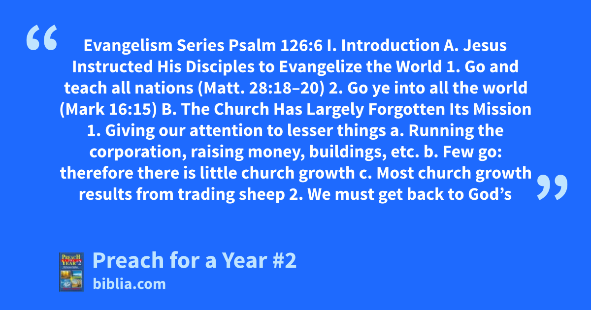 Preach for a Year #2 provides the busy pastor or teacher with 104 sermon outlines, enough for two sermons every Sunday of the year. These outlines are biblical-a complete Scripture index leads preachers to specific Bible passages. These practical and easy-to-use outlines are each structured in three steps. The first section is the Introduction which provides attention-getting thoughts for sermon...