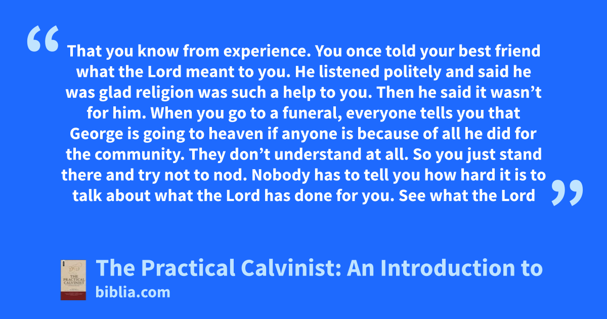 That you know from experience. You once told your best friend what the Lord meant to you. He listened politely and said he was glad religion was such a help to you. Then he said it wasn’t for him. When you go to a funeral, everyone tells you that George is going to heaven if anyone is because of all he did for the community. They don’t understand at all. So you just stand there and try not to nod. Nobody has to tell you how hard it is to talk about what the Lord has done for you. See what the Lord