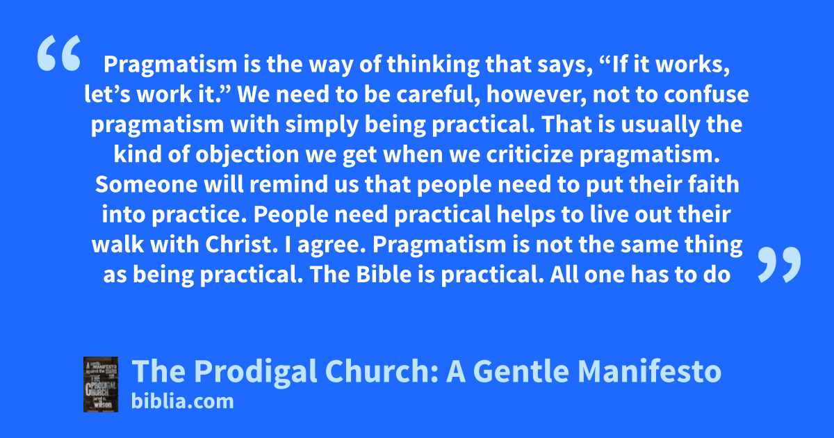Pragmatism is the way of thinking that says, “If it works, let’s work it.” We need to be careful, however, not to confuse pragmatism with simply being practical. That is usually the kind of objection we get when we criticize pragmatism. Someone will remind us that people need to put their faith into practice. People need practical helps to live out their walk with Christ. I agree. Pragmatism is not the same thing as being practical. The Bible is practical. All one has to do