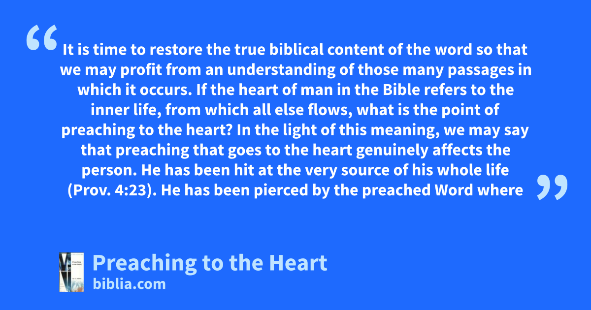 Preaching to the Heart is a short treatise on the art and necessity of preaching for a response. Think of it, preaching that calls forth action! Preaching that gets results! Preaching that stirs the listener so that he must respond! That is what we need today.