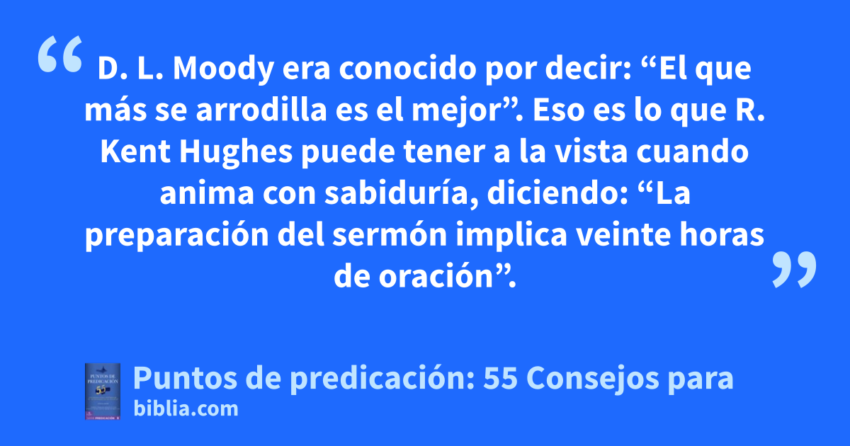 D. L. Moody era conocido por decir: “El que más se arrodilla es el mejor”. Eso es lo que R. Kent Hughes puede tener a la vista cuando anima con sabiduría, diciendo: “La preparación del sermón implica veinte horas de oración”.