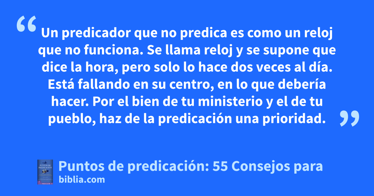 Un predicador que no predica es como un reloj que no funciona. Se llama reloj y se supone que dice la hora, pero solo lo hace dos veces al día. Está fallando en su centro, en lo que debería hacer. Por el bien de tu ministerio y el de tu pueblo, haz de la predicación una prioridad.