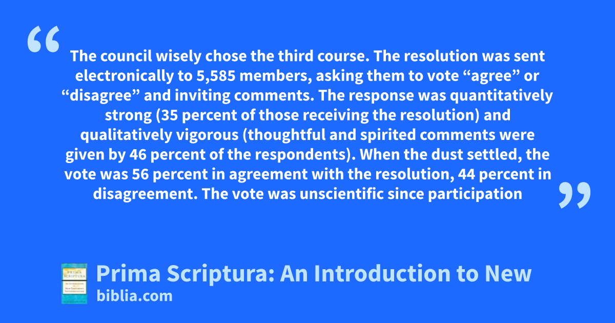 The council wisely chose the third course. The resolution was sent electronically to 5,585 members, asking them to vote “agree” or “disagree” and inviting comments. The response was quantitatively strong (35 percent of those receiving the resolution) and qualitatively vigorous (thoughtful and spirited comments were given by 46 percent of the respondents). When the dust settled, the vote was 56 percent in agreement with the resolution, 44 percent in disagreement. The vote was unscientific since participation