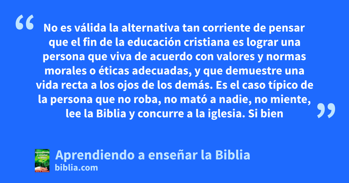 No es válida la alternativa tan corriente de pensar que el fin de la educación cristiana es lograr una persona que viva de acuerdo con valores y normas morales o éticas adecuadas, y que demuestre una vida recta a los ojos de los demás. Es el caso típico de la persona que no roba, no mató a nadie, no miente, lee la Biblia y concurre a la iglesia. Si bien