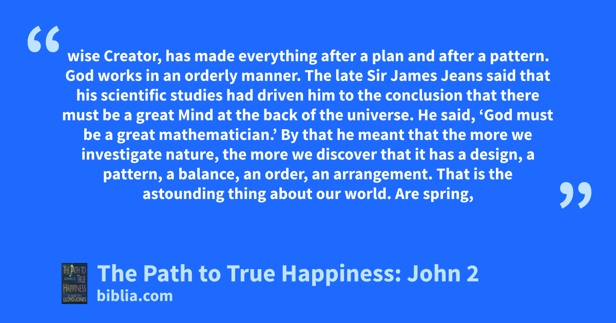 wise Creator, has made everything after a plan and after a pattern. God works in an orderly manner. The late Sir James Jeans said that his scientific studies had driven him to the conclusion that there must be a great Mind at the back of the universe. He said, ‘God must be a great mathematician.’ By that he meant that the more we investigate nature, the more we discover that it has a design, a pattern, a balance, an order, an arrangement. That is the astounding thing about our world. Are spring,