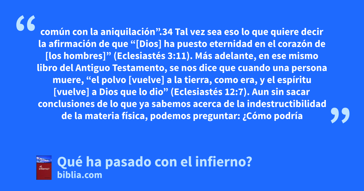 Nadie puede pensar seriamente en el Infierno y permanecer emocional y psicológicamente impasible. Abruma la idea de que, tras unos pocos años en la Tierra, un incontable número de seres humanos, muchos de los cuales se considerarían ciudadanos honrados y decentes, pasarán la eternidad en indescriptibles tormentos y expuestos a la implacable ira de Dios. Las reacciones a la paralizante...