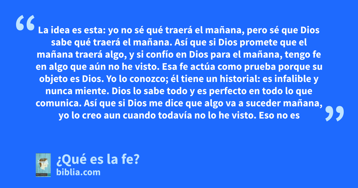 La idea es esta: yo no sé qué traerá el mañana, pero sé que Dios sabe qué traerá el mañana. Así que si Dios promete que el mañana traerá algo, y si confío en Dios para el mañana, tengo fe en algo que aún no he visto. Esa fe actúa como prueba porque su objeto es Dios. Yo lo conozco; él tiene un historial: es infalible y nunca miente. Dios lo sabe todo y es perfecto en todo lo que comunica. Así que si Dios me dice que algo va a suceder mañana, yo lo creo aun cuando todavía no lo he visto. Eso no es
